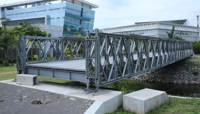 Dengan desain modular, jembatan Bailey dapat dibongkar pasang dengan mudah, sehingga sangat cocok digunakan sebagai solusi darurat maupun konstruksi permanen di lokasi yang membutuhkan akses segera.